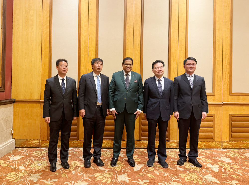 4月14日,來華進(jìn)行國事訪問的蘇里南共和國總統(tǒng)單多吉在北京會(huì)見中林集團(tuán)黨委書記、董事長(zhǎng)、總經(jīng)理單忠立。雙方就林木資源綜合開發(fā)利用、碳資產(chǎn)開發(fā)管理以及清潔能源項(xiàng)目開發(fā)等事宜進(jìn)行了深入交流。蘇里南外交、國際商務(wù)與國際合作部部長(zhǎng)拉姆丁,自然資源部部長(zhǎng)阿比亞莫福;中林集團(tuán)黨委副書記、董事張炳南,黨委委員、副總經(jīng)理李留彬、翁文林參加會(huì)見。