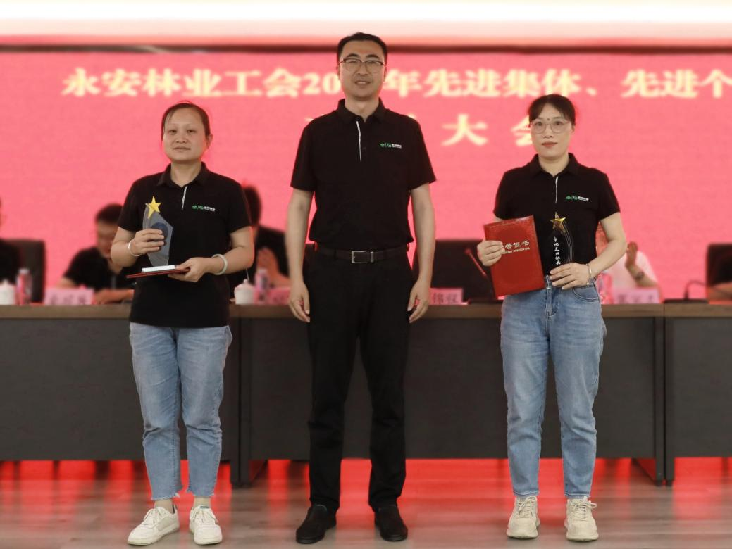 表彰儀式上,永安林業(yè)黨委領(lǐng)導(dǎo)班子成員、獨(dú)立董事共同為先進(jìn)集體和先進(jìn)個(gè)人代表頒獎(jiǎng)。永安林業(yè)經(jīng)理層、基層工會(huì)主席、職工代表等參加大會(huì)。