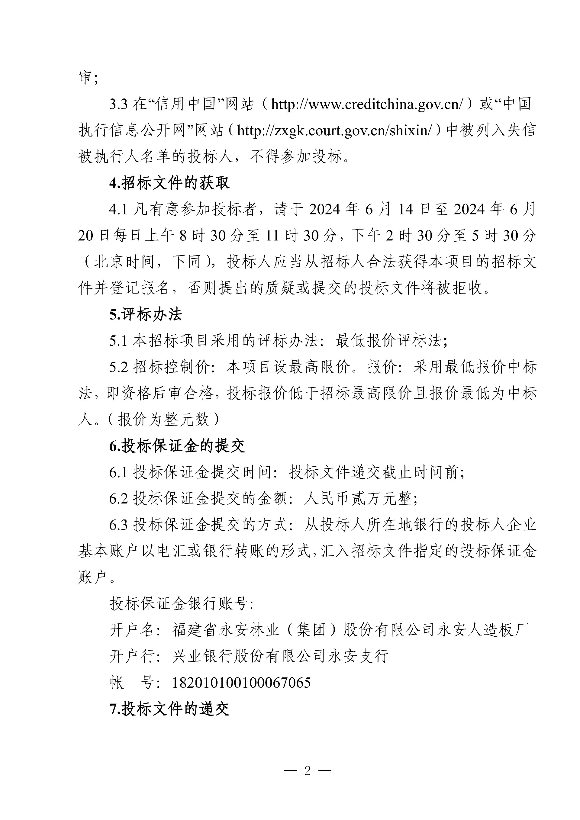 永安人造板廠三期車間部分生產承包服務項目招標公告