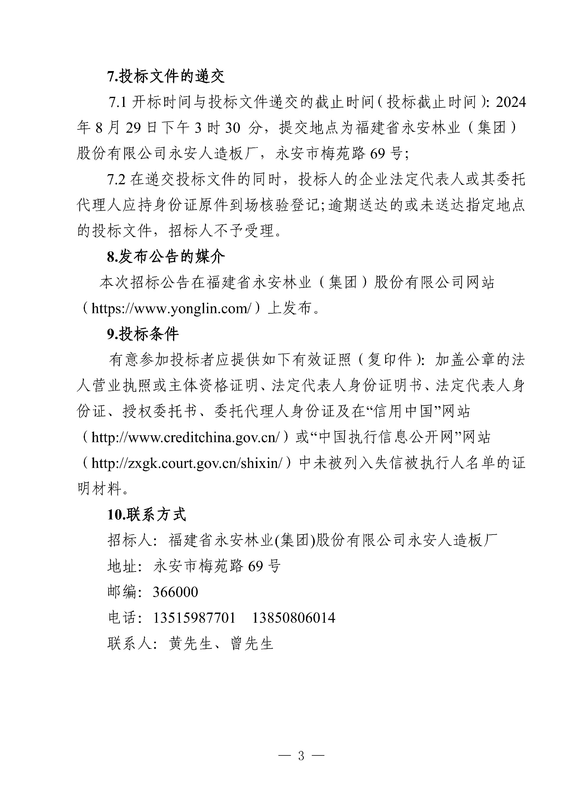 永安人造板廠三期車間部分生產(chǎn)承包服務(wù)項(xiàng)目招標(biāo)公告