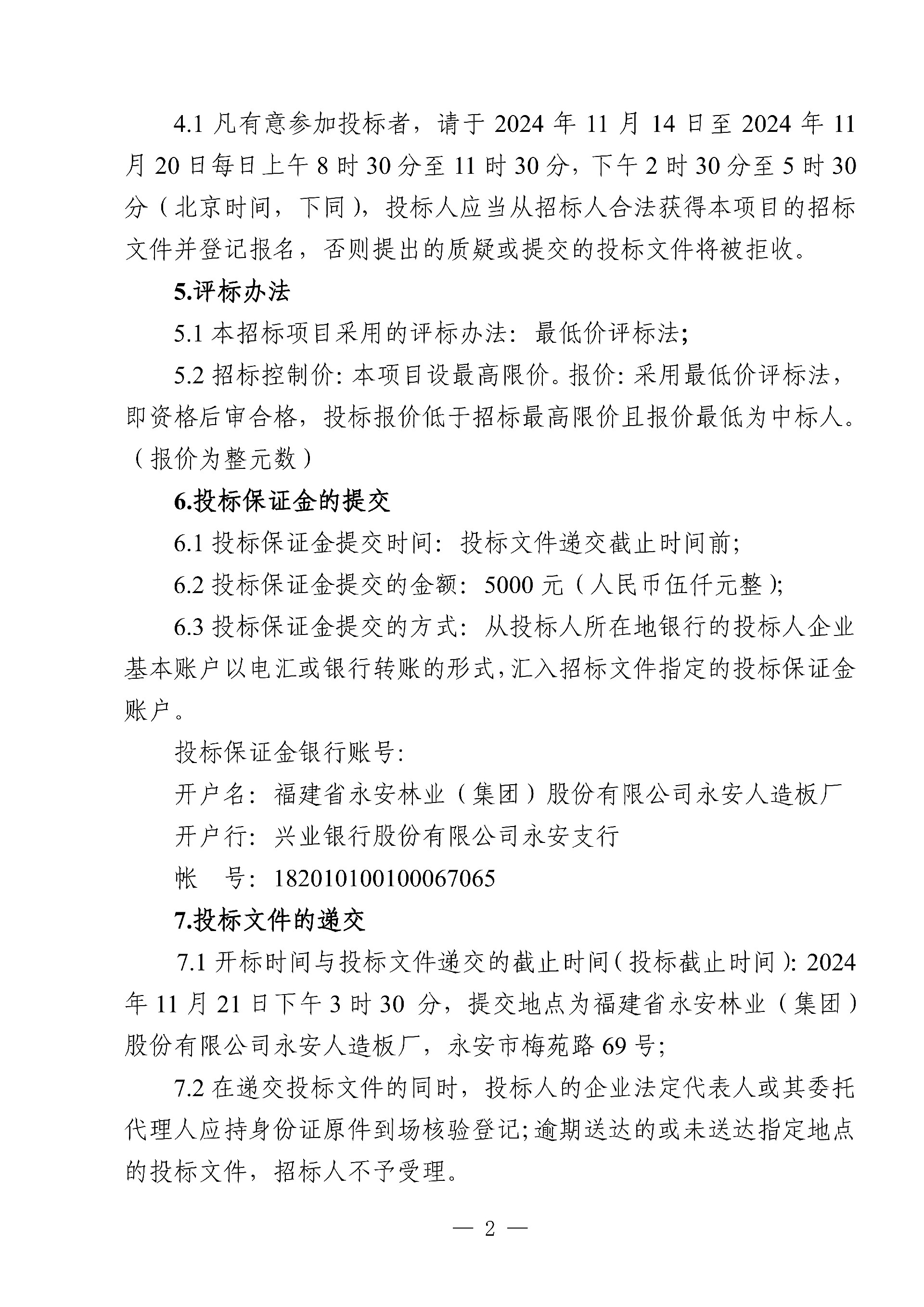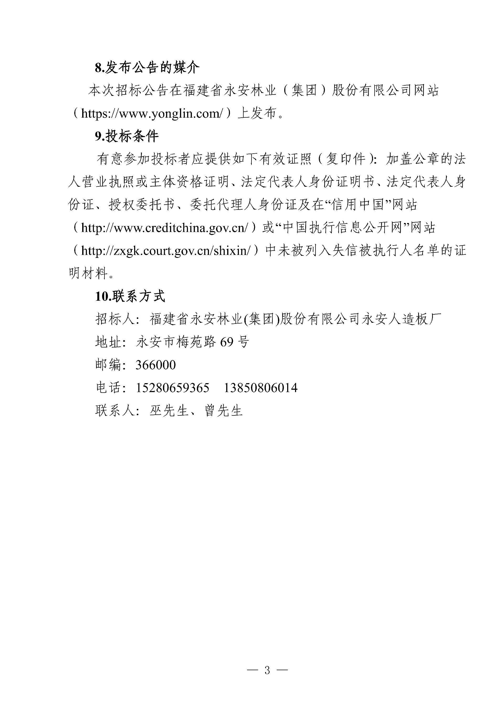 永安人造板廠三聚氰胺采購項(xiàng)目招標(biāo)公告