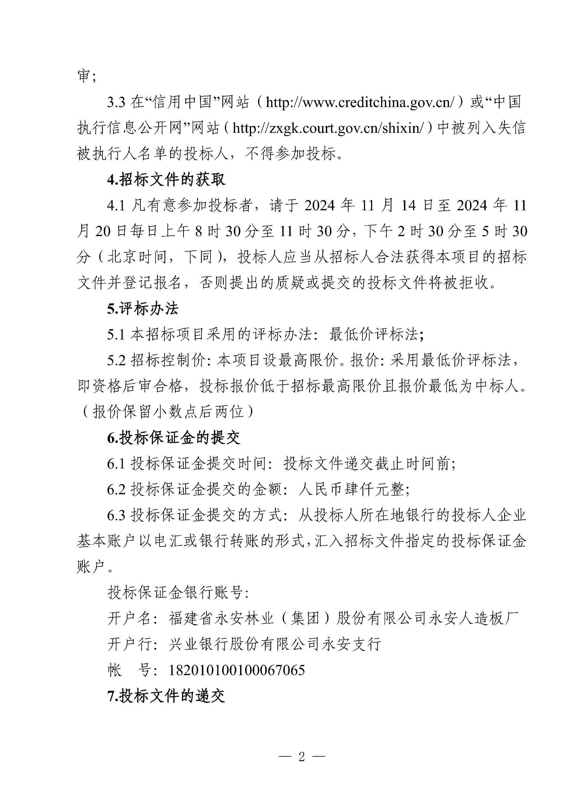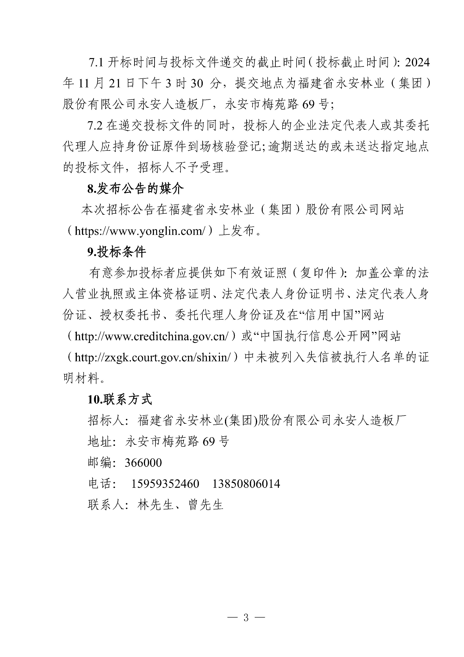 永安人造板廠三聚氰胺采購項目招標公告