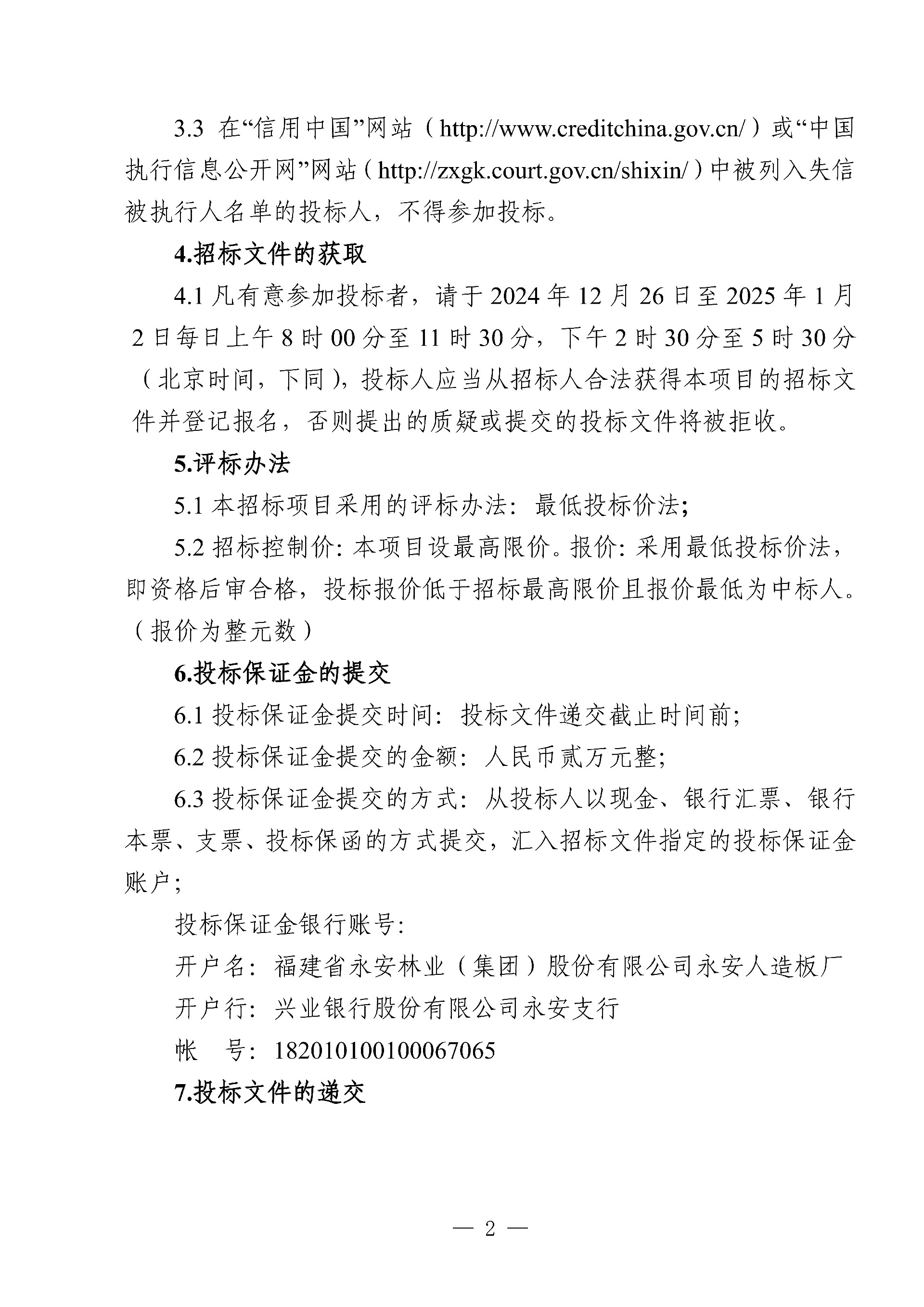 永安人造板廠三聚氰胺采購項(xiàng)目招標(biāo)公告