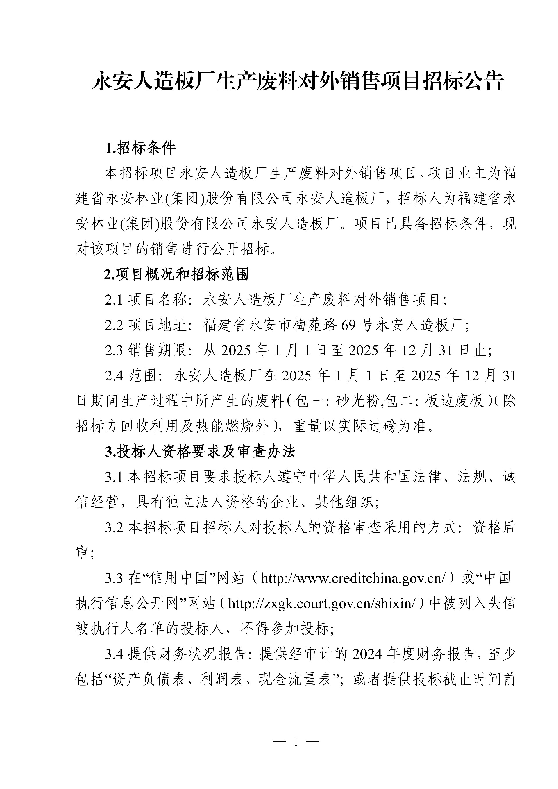 永安人造板廠生產(chǎn)廢料對(duì)外銷售項(xiàng)目招標(biāo)公告