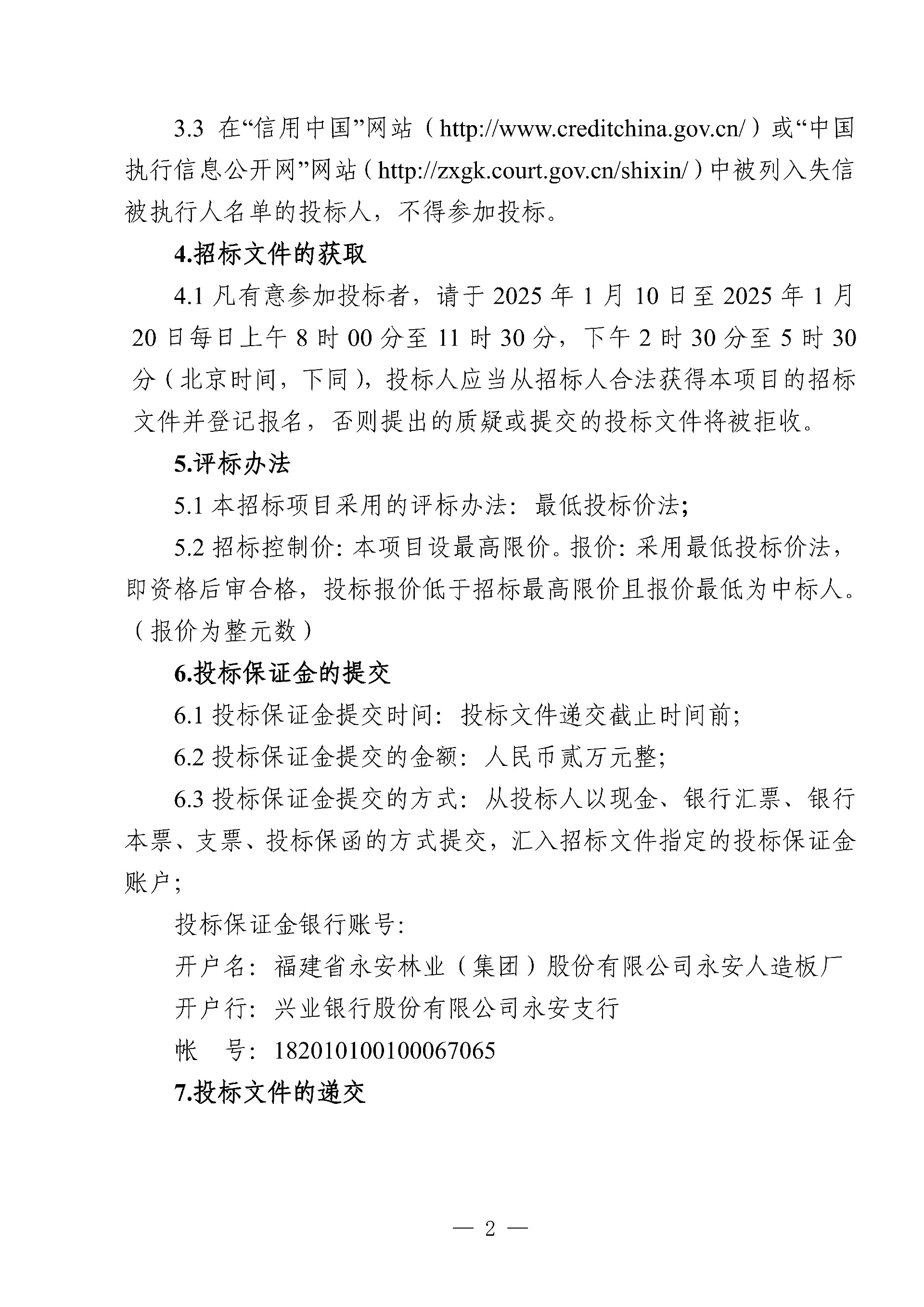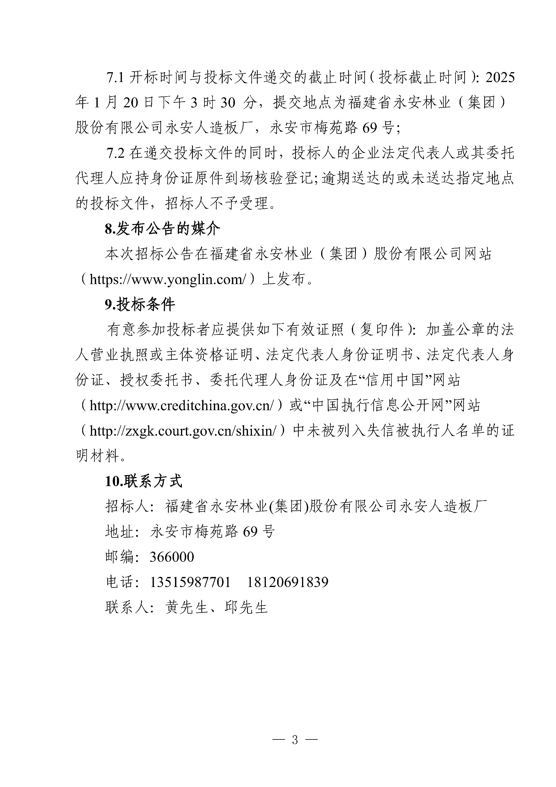 永安人造板廠三聚氰胺采購項(xiàng)目招標(biāo)公告