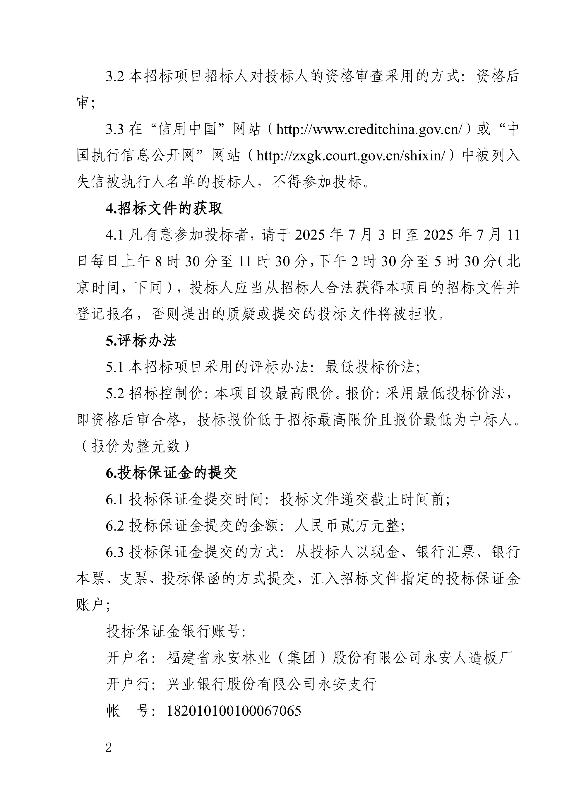 永安人造板廠三期車間部分生產(chǎn)承包服務(wù)項(xiàng)目招標(biāo)公告