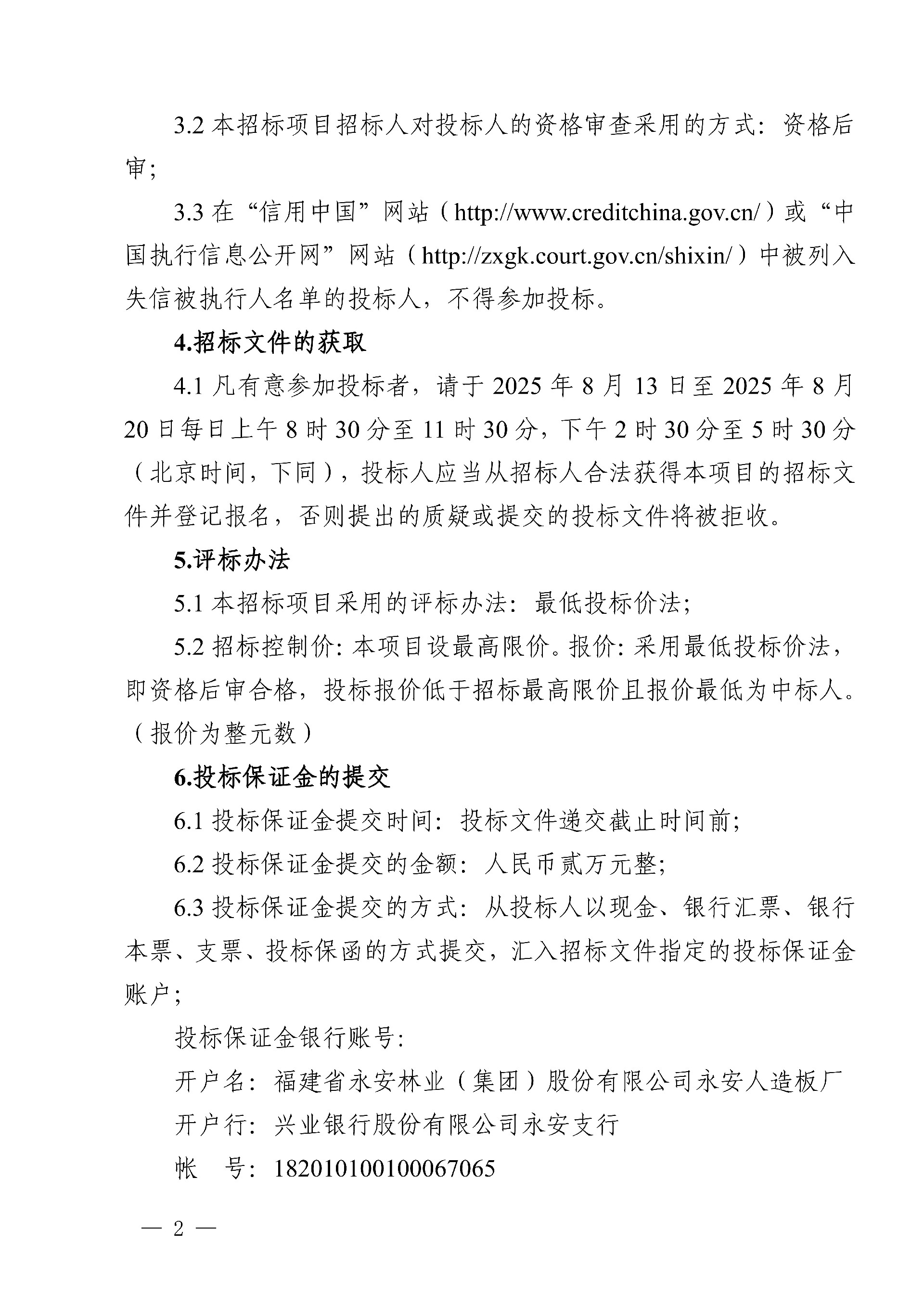 永安人造板廠三期車間部分生產(chǎn)承包服務(wù)項目招標(biāo)公告