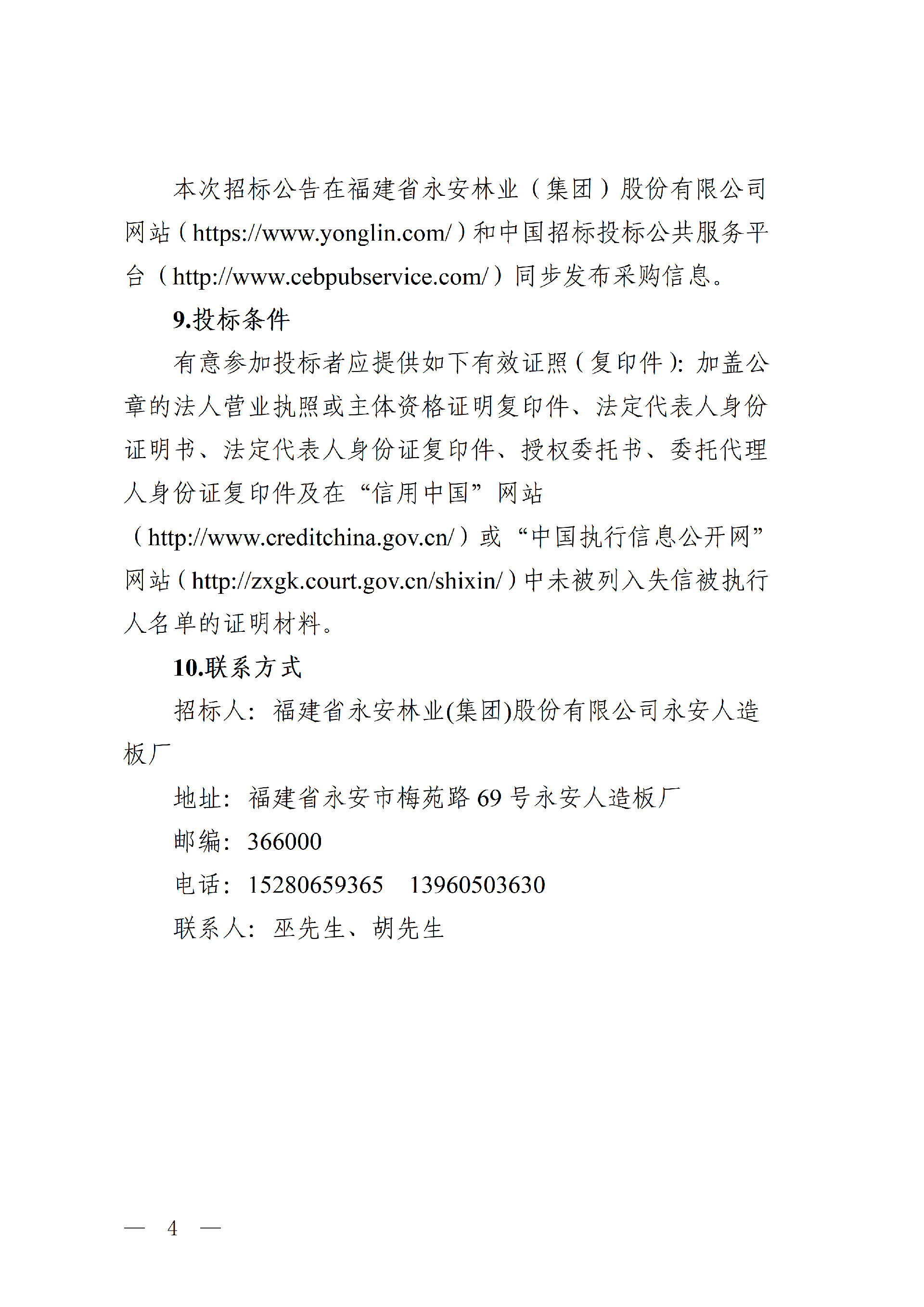 永安人造板廠三期車間部分生產(chǎn)承包服務(wù)項目招標公告