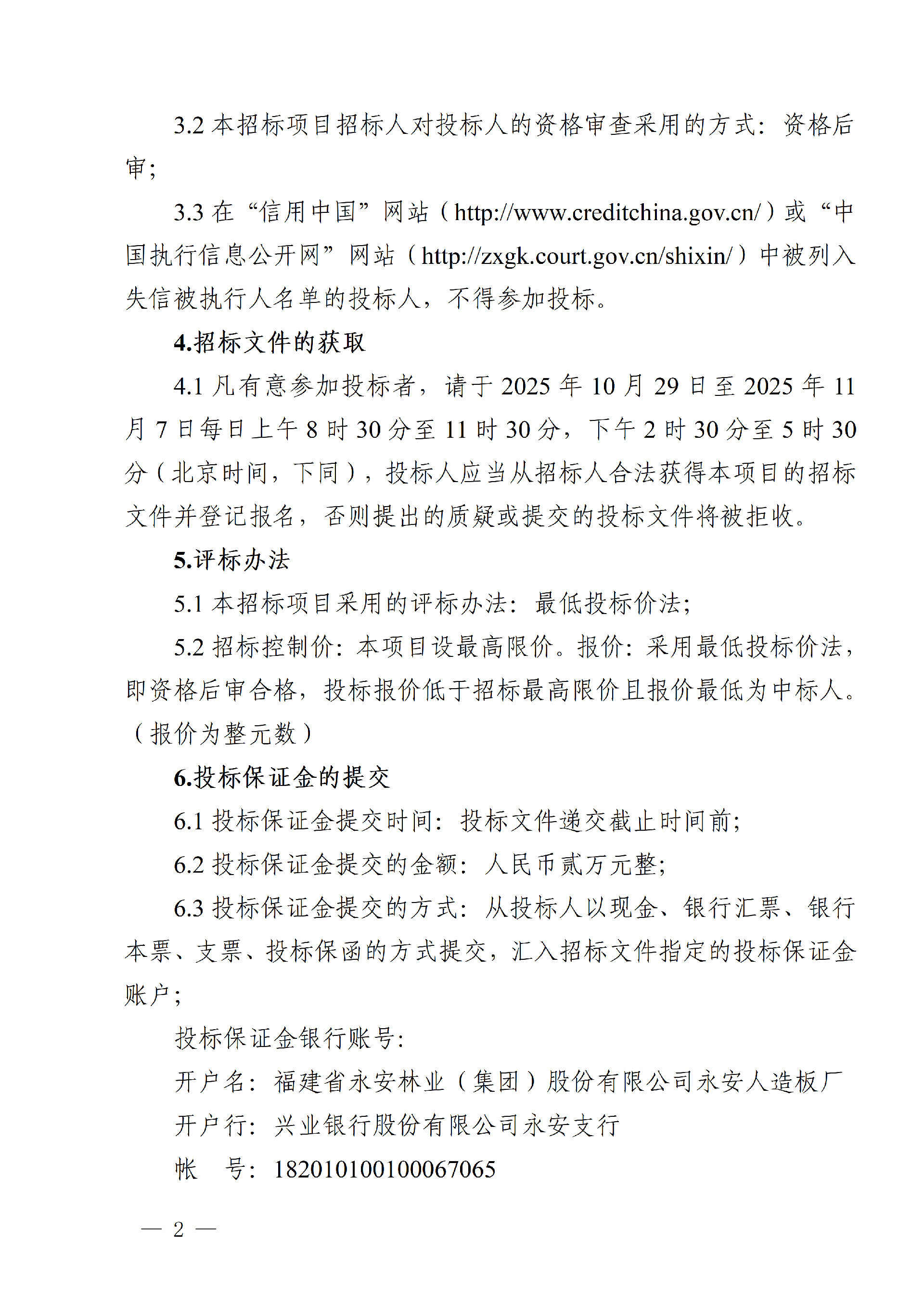 永安人造板廠三期車(chē)間部分生產(chǎn)承包服務(wù)項(xiàng)目招標(biāo)公告