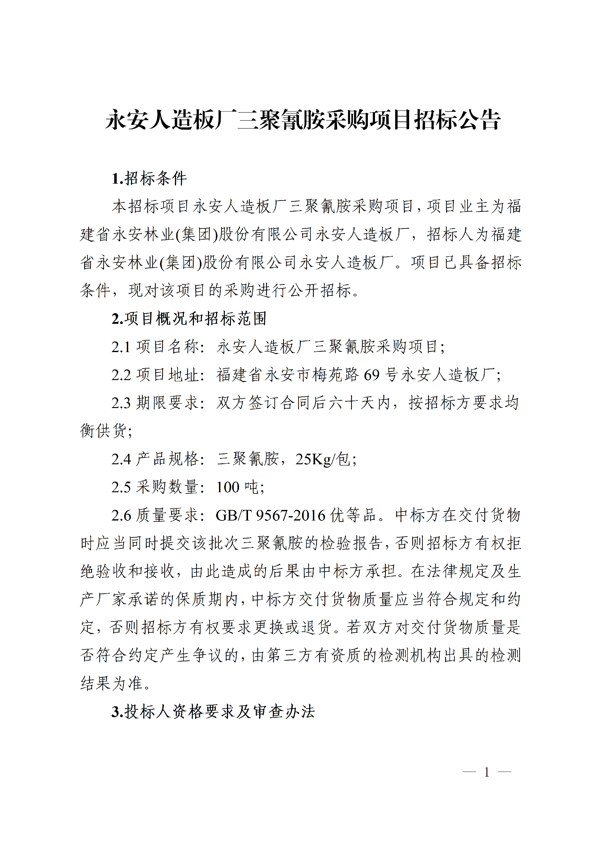永安人造板廠工業(yè)甲醛溶液采購項目招標公告