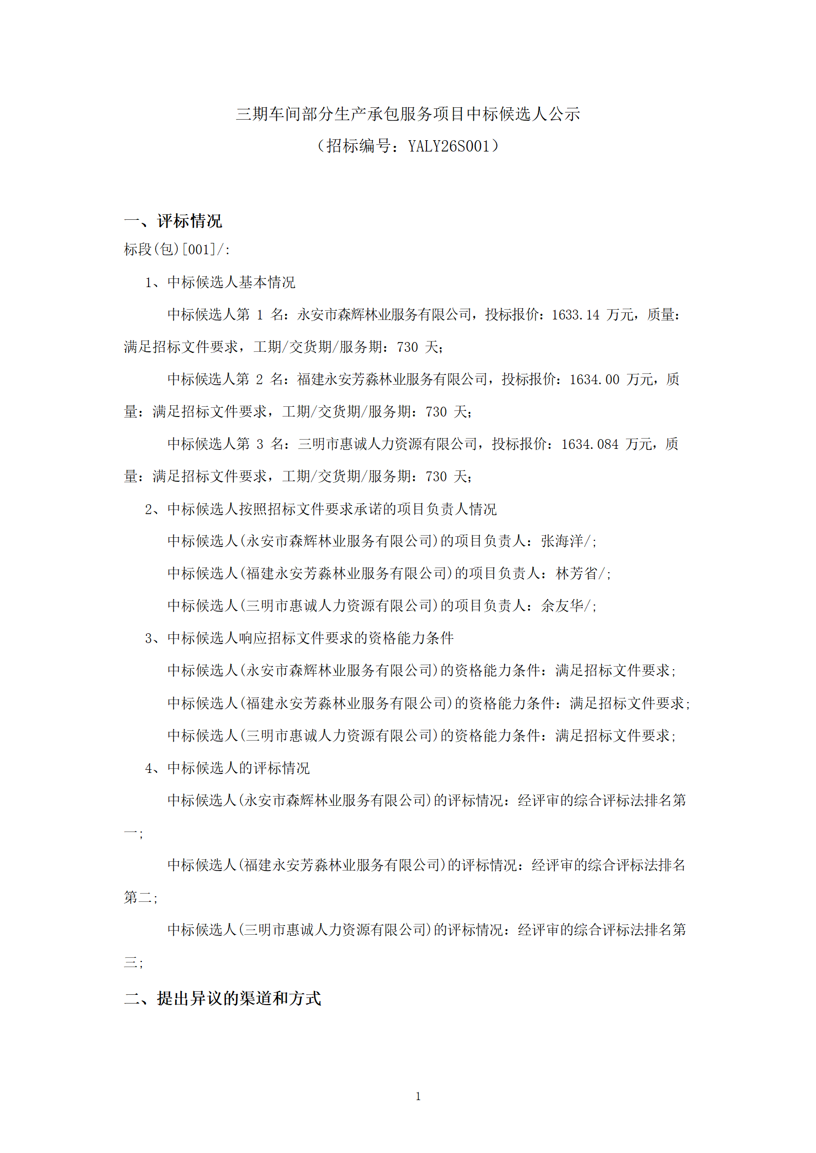 永安人造板廠三期車間部分生產(chǎn)承包服務(wù)項(xiàng)目中標(biāo)候選人公示