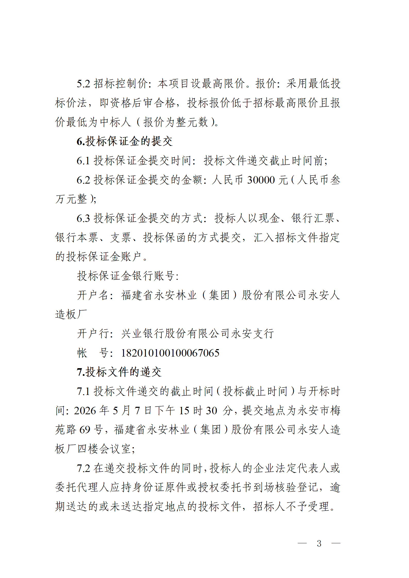 永安人造板廠工業(yè)甲醛溶液采購項目招標(biāo)公告