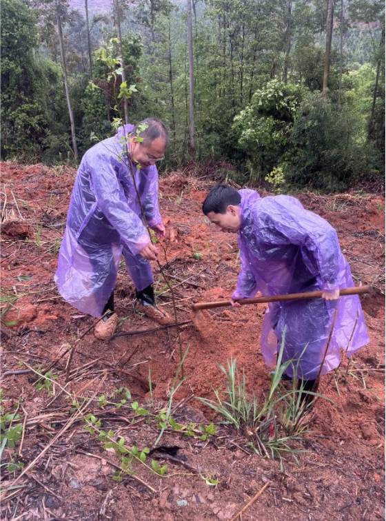 永安林業(yè)機關(guān)黨支部組織永安林業(yè)森經(jīng)公司黨總支,開展“講雷鋒故事 學(xué)雷鋒精神 做時代先鋒”主題黨日活動。干部職工赴永安市大湖鎮(zhèn)嶺干村造林地,一同種植楓香。綿綿陰雨澆不滅干部職工們的熱情,經(jīng)過數(shù)小時團(tuán)結(jié)協(xié)作,一株株風(fēng)香幼苗茁壯地挺立于大地,寄托著永林人守護(hù)綠色、修復(fù)生態(tài)的美好愿望,也代表著永林人以實際行動踐行“綠水青山就是金山銀山”理念、傳遞學(xué)雷鋒精神,為美麗中國增添一抹抹新綠。