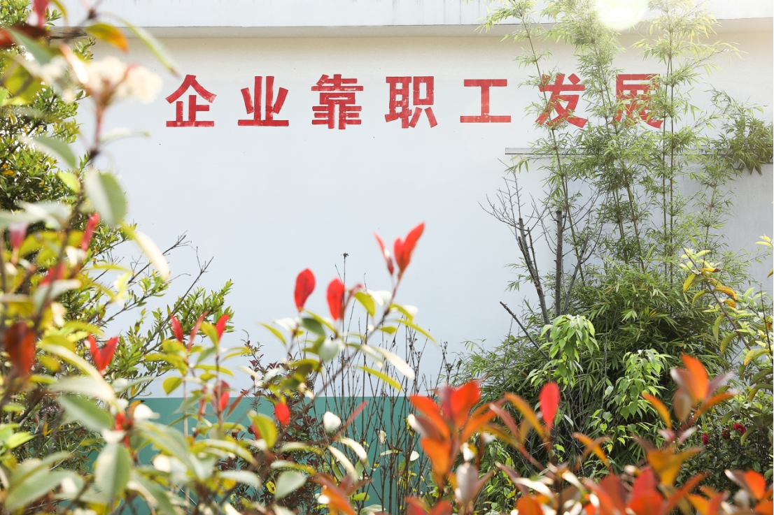 看五彩繽紛間,廠區(qū)一隅的激昂標(biāo)語(yǔ)催人奮進(jìn):“企業(yè)靠職工發(fā)展?!辈菽久刃律L(zhǎng),企業(yè)蓬勃向上,永安林業(yè)的欣欣向榮離不開(kāi)廣大職工的努力付出,一切都是朝氣的模樣。