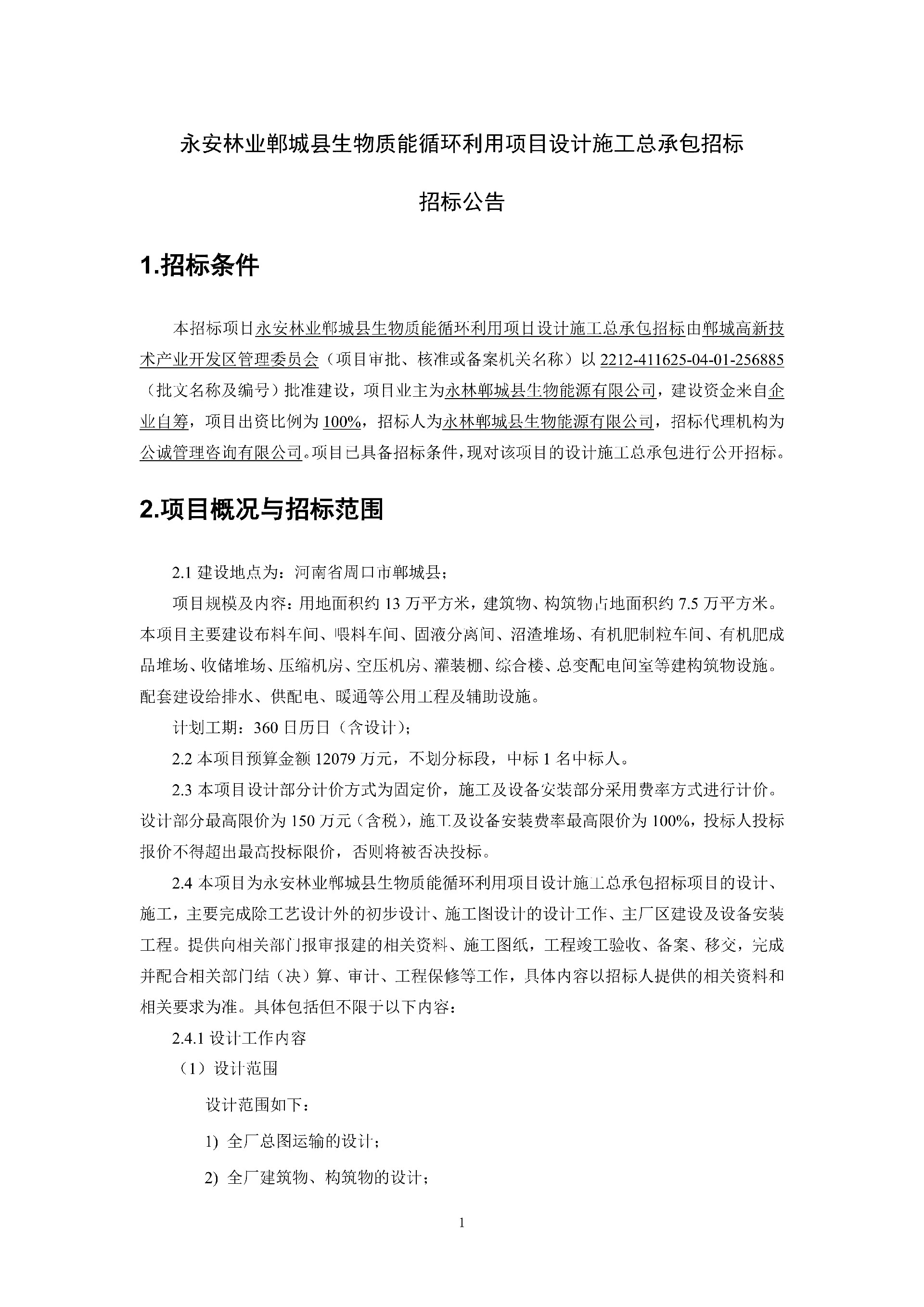 永安林業(yè)鄲城縣生物質(zhì)能循環(huán)利用項(xiàng)目設(shè)計(jì)施工總承包招標(biāo)公告