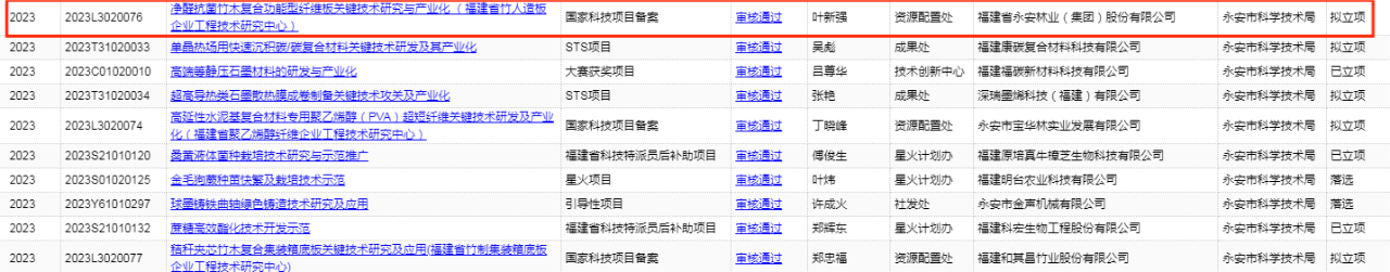 近日,福建省科學(xué)技術(shù)廳公布2023年度福建省中央引導(dǎo)地方科技發(fā)展資金項(xiàng)目擬立項(xiàng)企業(yè)項(xiàng)目公示清單,永安林業(yè)“凈醛抗菌竹木復(fù)合功能型纖維板關(guān)鍵技術(shù)研究與產(chǎn)業(yè)化”項(xiàng)目成功入選,項(xiàng)目類型為國(guó)家科技項(xiàng)目備案。